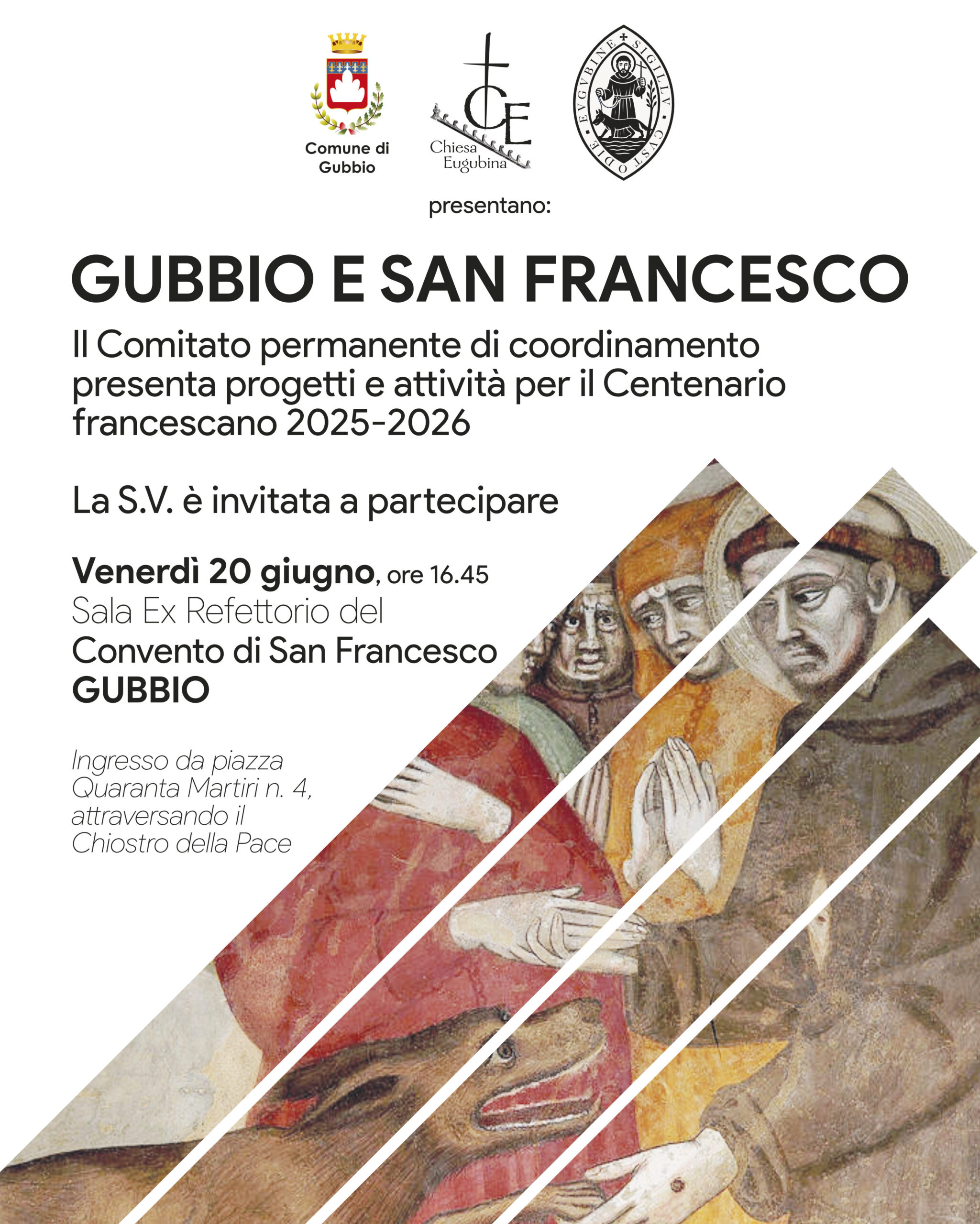Il Centenario francescano rappresenta un’occasione preziosa per riscoprire e valorizzare il profondo legame tra San Francesco e la città di Gubbio, teatro di numerosi episodi significativi della vita del Santo, tra cui l’incontro con il Lupo, divenuto nel tempo uno dei simboli più forti del suo messaggio.